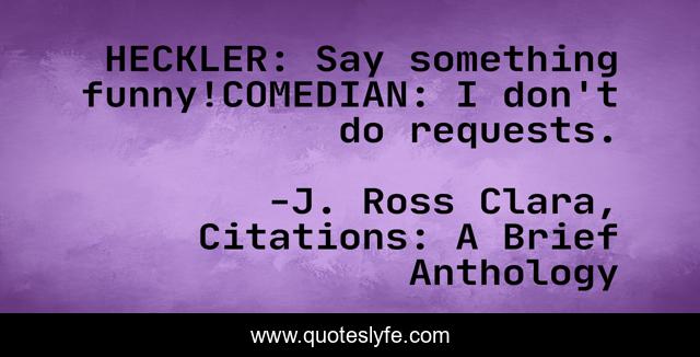 "J. Ross Clara, Citations: A Brief Anthology Quotes." Quoteslyfe.com, 2025. Mon. 08 Dec. 2025. <https://www.quoteslyfe.com/quote/HECKLER-Say-something-funny-COMEDIAN-I-don-205824>.