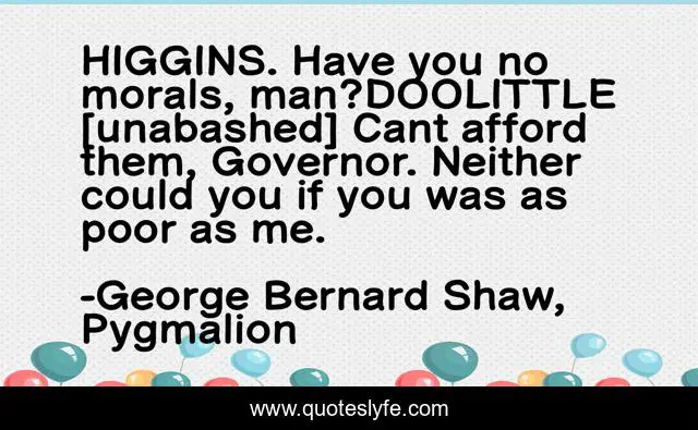"George Bernard Shaw, Pygmalion Quotes." Quoteslyfe.com, 2025. Sat. 06 Dec. 2025. <https://www.quoteslyfe.com/quote/HIGGINS-Have-you-no-morals-man-DOOLITTLE-150621>.