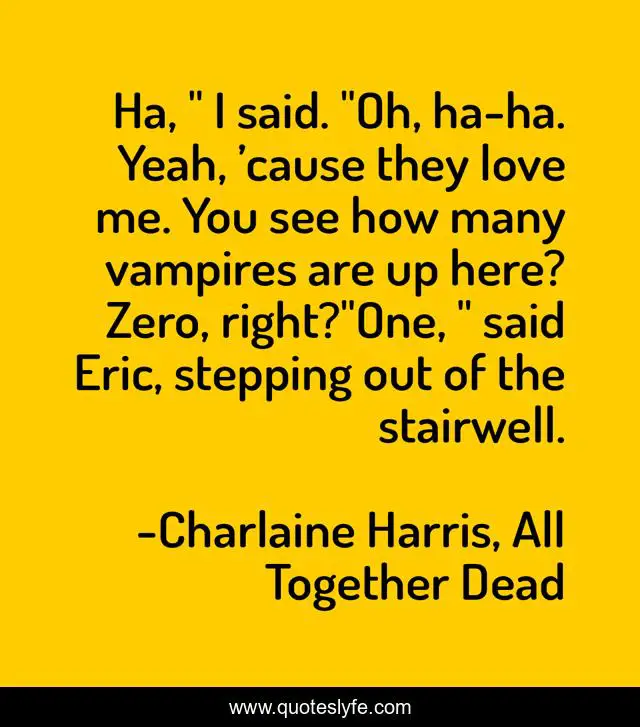 "Charlaine Harris, All Together Dead Quotes." Quoteslyfe.com, 2025. Tue. 09 Dec. 2025. <https://www.quoteslyfe.com/quote/Ha-I-said-Oh-ha-ha-Yeah-202508>.