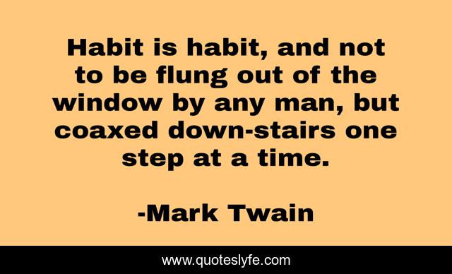 This page presents the quote "Habit is habit, and not to be flung out of the window by any man, but coaxed down-stairs one step at a time.". Author of this quote is Mark Twain. This quote is about recovery, habit,.