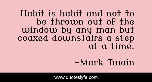 This page presents the quote "Habit is habit and not to be thrown out of the window by any man but coaxed downstairs a step at a time.". Author of this quote is Mark Twain. This quote is about tradition, habit,.