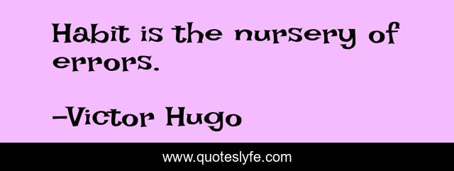 This page presents the quote "Habit is the nursery of errors.". Author of this quote is Victor Hugo. This quote is about nursery, errors, habit,.