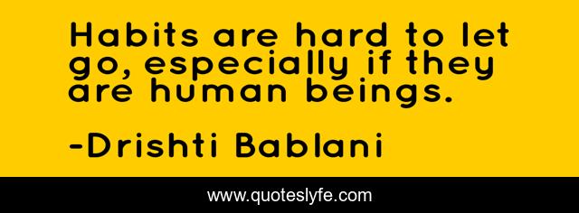 This page presents the quote "Habits are hard to let go, especially if they are human beings.". Author of this quote is Drishti Bablani. This quote is about letting-go, habits,.