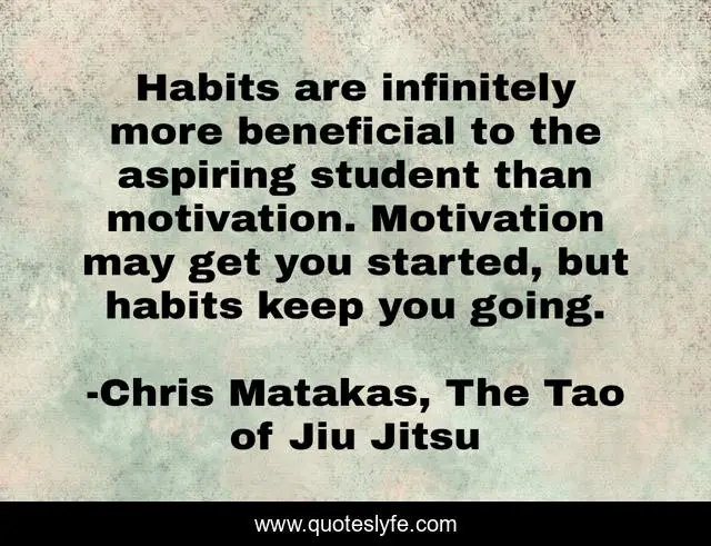 "Chris Matakas, The Tao of Jiu Jitsu Quotes." Quoteslyfe.com, 2025. Mon. 08 Dec. 2025. <https://www.quoteslyfe.com/quote/Habits-are-infinitely-more-beneficial-to-the-47644>.