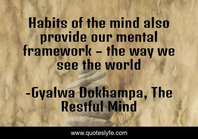 This page presents the quote "Habits of the mind also provide our mental framework – the way we see the world". Author of this quote is Gyalwa Dokhampa, The Restful Mind. This quote is about habits, mental-framework, worldview, perception,.