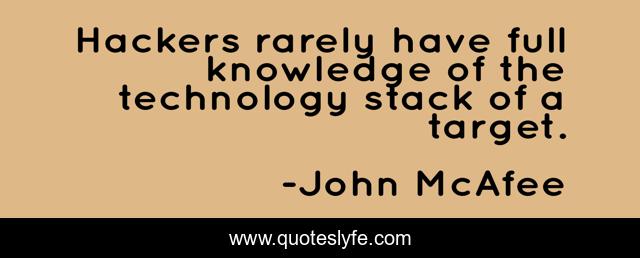 This page presents the quote "Hackers rarely have full knowledge of the technology stack of a target.". Author of this quote is John McAfee. This quote is about technology, target, hackers,.