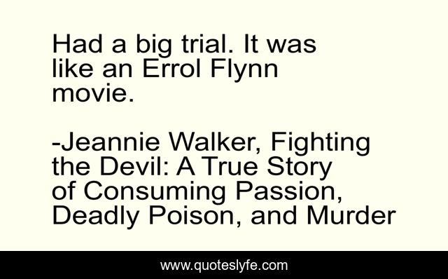 This page presents the quote "Had a big trial. It was like an Errol Flynn movie.". Author of this quote is Jeannie Walker, Fighting the Devil: A True Story of Consuming Passion, Deadly Poison, and Murder. This quote is about murder-mystery, adult-non-fiction, thriller, true-crime,.