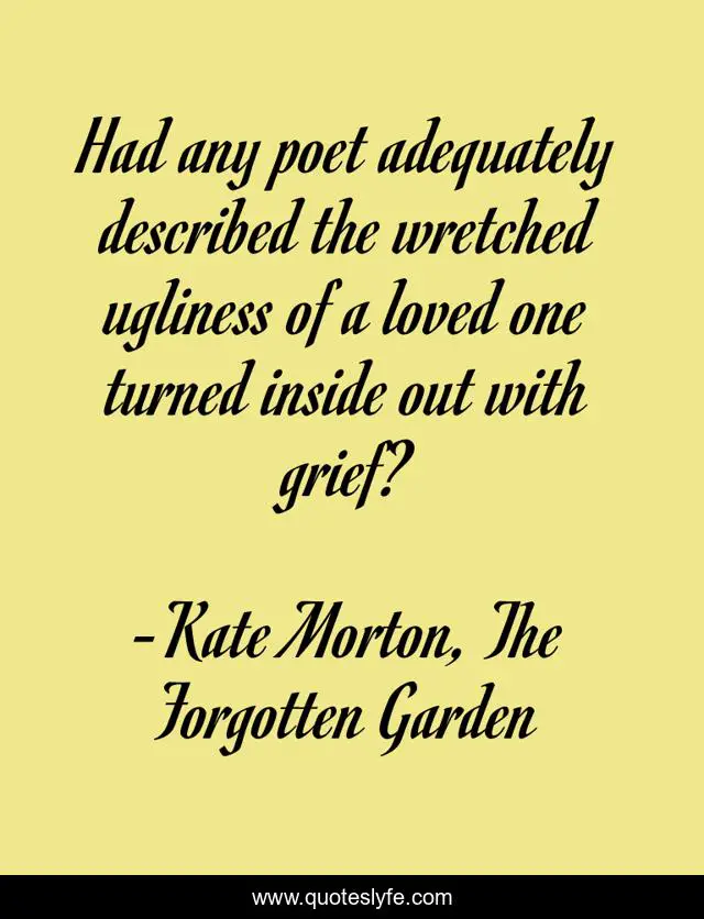 This page presents the quote "Had any poet adequately described the wretched ugliness of a loved one turned inside out with grief?". Author of this quote is Kate Morton, The Forgotten Garden. This quote is about grief, loved-ones,.