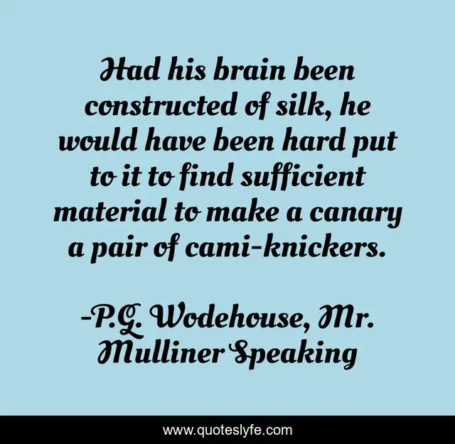 This page presents the quote "Had his brain been constructed of silk, he would have been hard put to it to find sufficient material to make a canary a pair of cami-knickers.". Author of this quote is P.G. Wodehouse, Mr. Mulliner Speaking. This quote is about brain, canary, knickers,.