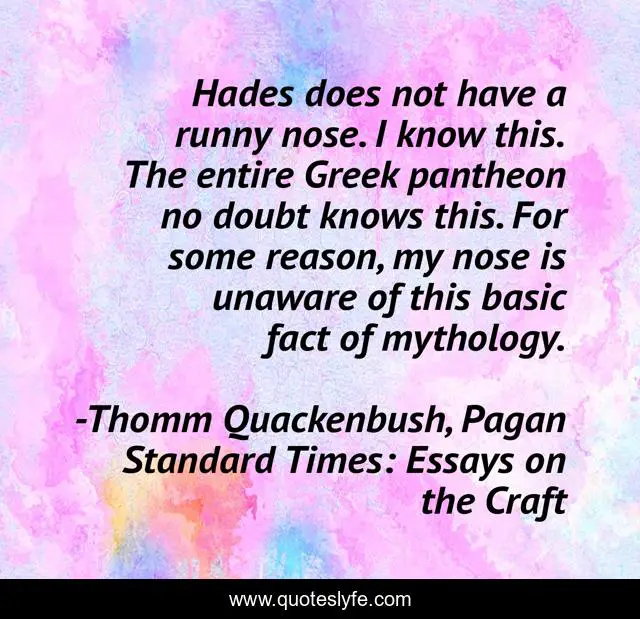 "Thomm Quackenbush, Pagan Standard Times: Essays on the Craft Quotes." Quoteslyfe.com, 2025. Fri. 05 Dec. 2025. <https://www.quoteslyfe.com/quote/Hades-does-not-have-a-runny-nose-242759>.
