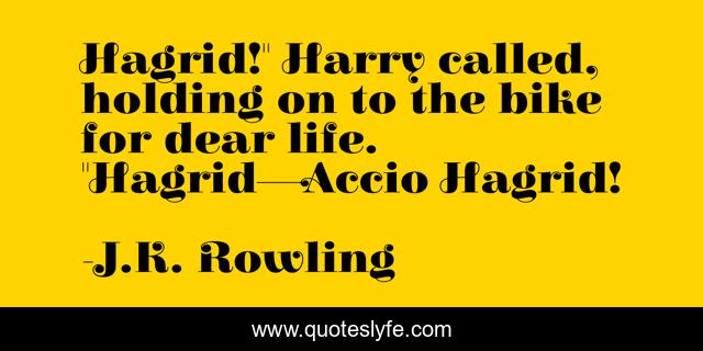 This page presents the quote "Hagrid!" Harry called, holding on to the bike for dear life. "Hagrid—Accio Hagrid!". Author of this quote is J.K. Rowling. This quote is about hagrid, harry-potter,.