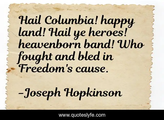 "Joseph Hopkinson Quotes." Quoteslyfe.com, 2025. Mon. 08 Dec. 2025. <https://www.quoteslyfe.com/quote/Hail-Columbia-happy-land-Hail-ye-heroes-260138>.