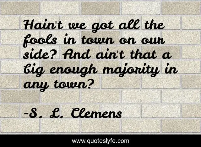 This page presents the quote "Hain't we got all the fools in town on our side? And ain't that a big enough majority in any town?". Author of this quote is S. L. Clemens. .