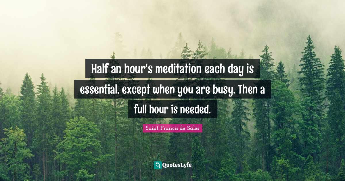 "Saint Francis de Sales Quotes." Quoteslyfe.com, 2026. Mon. 12 Jan. 2026. <https://www.quoteslyfe.com/quote/Half-an-hour-s-meditation-each-day-1034811>.