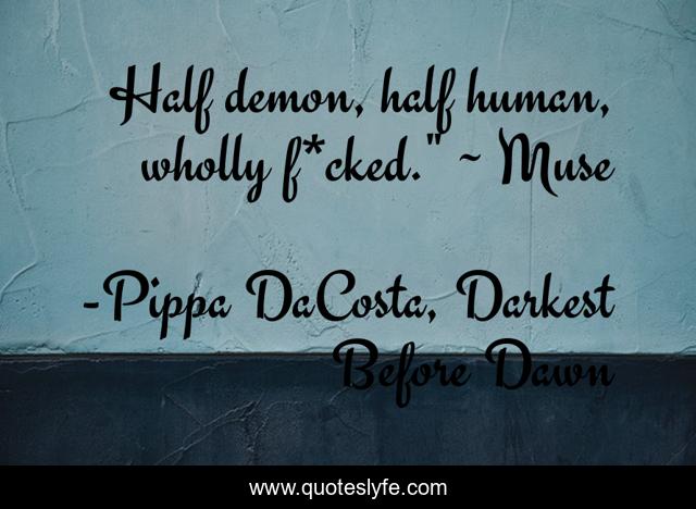 "Pippa DaCosta, Darkest Before Dawn Quotes." Quoteslyfe.com, 2025. Mon. 08 Dec. 2025. <https://www.quoteslyfe.com/quote/Half-demon-half-human-wholly-f-cked-232257>.