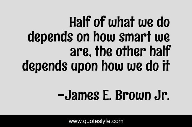 This page presents the quote "Half of what we do depends on how smart we are, the other half depends upon how we do it". Author of this quote is James E. Brown Jr.. This quote is about performance, life, balance, focus,.