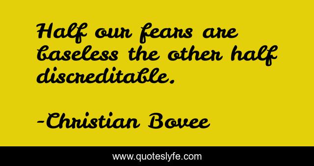 This page presents the quote "Half our fears are baseless the other half discreditable.". Author of this quote is Christian Bovee. This quote is about success, happiness,.