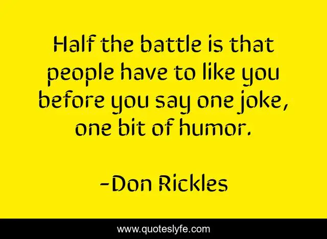 This page presents the quote "Half the battle is that people have to like you before you say one joke, one bit of humor.". Author of this quote is Don Rickles. This quote is about battle, people,.