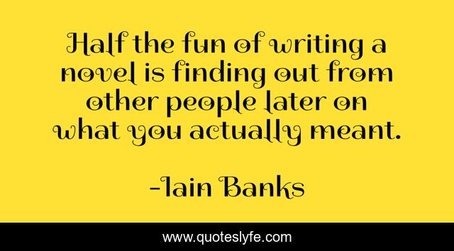 This page presents the quote "Half the fun of writing a novel is finding out from other people later on what you actually meant.". Author of this quote is Iain Banks. .