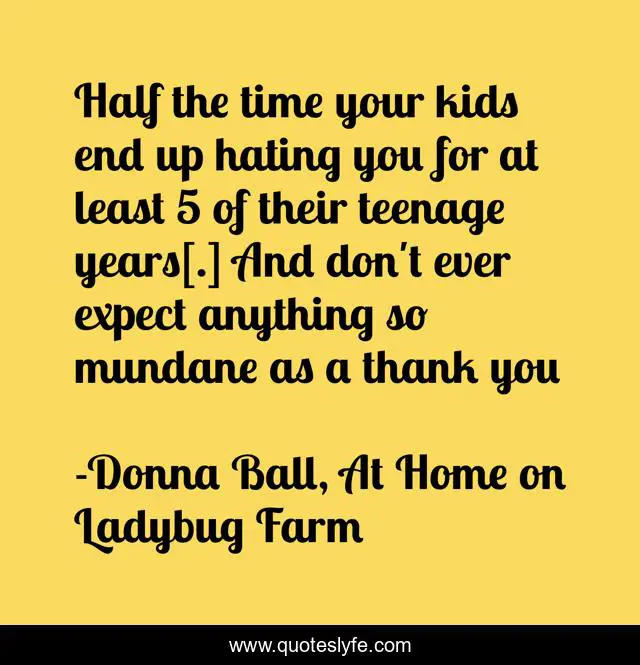 "Donna Ball, At Home on Ladybug Farm Quotes." Quoteslyfe.com, 2025. Mon. 08 Dec. 2025. <https://www.quoteslyfe.com/quote/Half-the-time-your-kids-end-up-213208>.