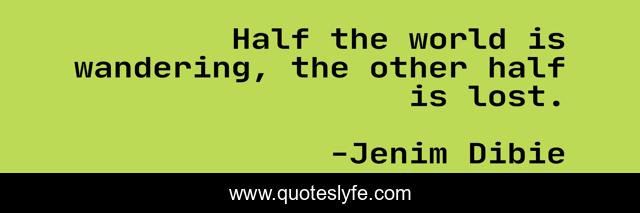 "Jenim Dibie Quotes." Quoteslyfe.com, 2025. Mon. 08 Dec. 2025. <https://www.quoteslyfe.com/quote/Half-the-world-is-wandering-the-other-211368>.