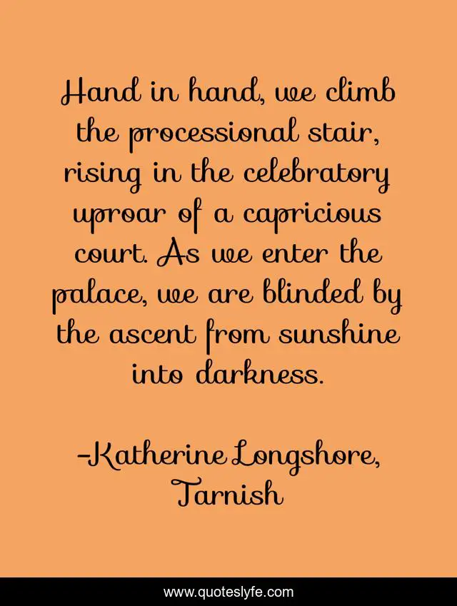 "Katherine Longshore, Tarnish Quotes." Quoteslyfe.com, 2025. Sat. 06 Dec. 2025. <https://www.quoteslyfe.com/quote/Hand-in-hand-we-climb-the-processional-148758>.