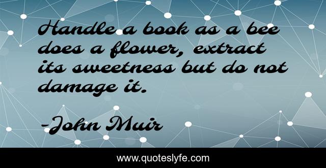 This page presents the quote "Handle a book as a bee does a flower, extract its sweetness but do not damage it.". Author of this quote is John Muir. This quote is about bees, books, nature,.