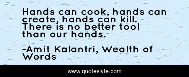 "Amit Kalantri, Wealth of Words Quotes." Quoteslyfe.com, 2025. Fri. 05 Dec. 2025. <https://www.quoteslyfe.com/quote/Hands-can-cook-hands-can-create-hands-23102>.