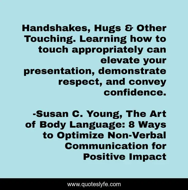 "Susan C. Young, The Art of Body Language: 8 Ways to Optimize Non-Verbal Communication for Positive Impact Quotes." Quoteslyfe.com, 2025. Fri. 05 Dec. 2025. <https://www.quoteslyfe.com/quote/Handshakes-Hugs-Other-Touching-Learning-how-to-233486>.