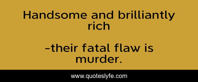 "their fatal flaw is murder. Quotes." Quoteslyfe.com, 2025. Sat. 06 Dec. 2025. <https://www.quoteslyfe.com/quote/Handsome-and-brilliantly-rich-202727>.