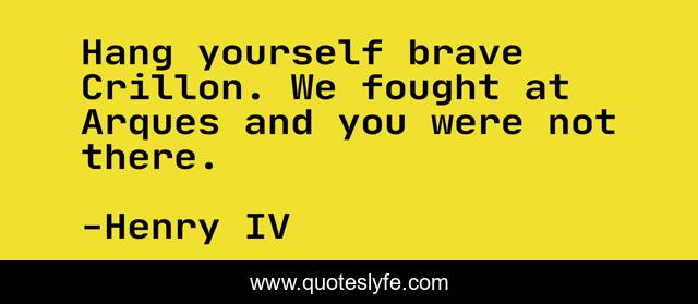 "Henry IV Quotes." Quoteslyfe.com, 2025. Sat. 06 Dec. 2025. <https://www.quoteslyfe.com/quote/Hang-yourself-brave-Crillon-We-fought-at-278554>.