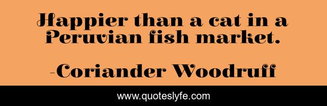 This page presents the quote "Happier than a cat in a Peruvian fish market.". Author of this quote is Coriander Woodruff. This quote is about peruvian, fish, cat, peru, happiness, happy,.
