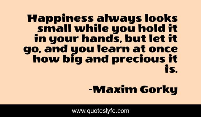 This page presents the quote "Happiness always looks small while you hold it in your hands, but let it go, and you learn at once how big and precious it is.". Author of this quote is Maxim Gorky. This quote is about small, hands,.