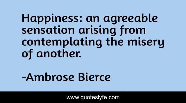 This page presents the quote "Happiness: an agreeable sensation arising from contemplating the misery of another.". Author of this quote is Ambrose Bierce. This quote is about contemplating, misery,.