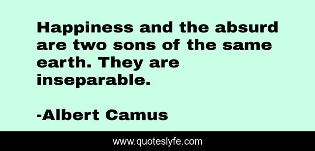 This page presents the quote "Happiness and the absurd are two sons of the same earth. They are inseparable.". Author of this quote is Albert Camus. This quote is about absurdity, happiness,.