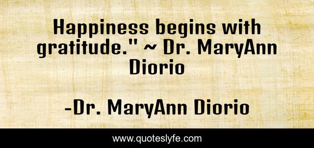 "Dr. MaryAnn Diorio Quotes." Quoteslyfe.com, 2025. Sat. 06 Dec. 2025. <https://www.quoteslyfe.com/quote/Happiness-begins-with-gratitude-Dr-MaryAnn-Diorio-180227>.