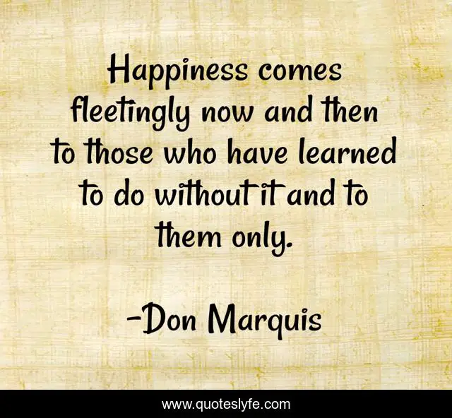 "Don Marquis Quotes." Quoteslyfe.com, 2025. Sun. 07 Dec. 2025. <https://www.quoteslyfe.com/quote/Happiness-comes-fleetingly-now-and-then-to-267682>.