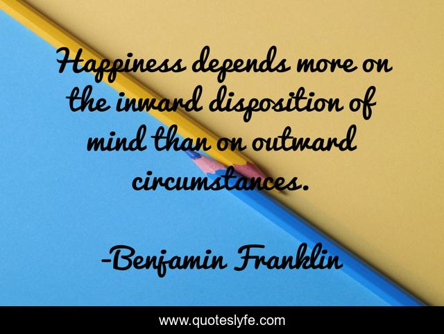 This page presents the quote "Happiness depends more on the inward disposition of mind than on outward circumstances.". Author of this quote is Benjamin Franklin. This quote is about enthusiasm, inspirational,.