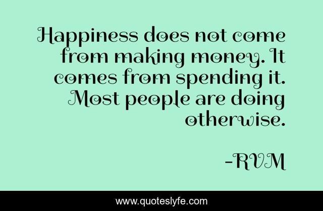 This page presents the quote "Happiness does not come from making money. It comes from spending it. Most people are doing otherwise.". Author of this quote is RVM. This quote is about motivation, inspiration,.