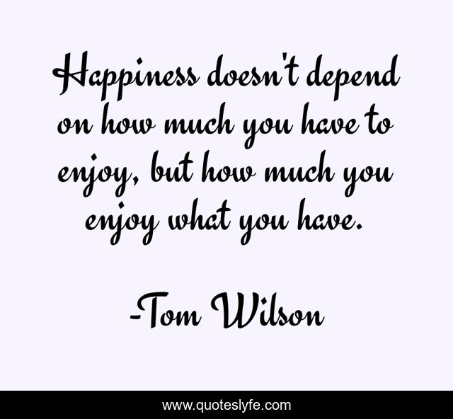 This page presents the quote "Happiness doesn't depend on how much you have to enjoy, but how much you enjoy what you have.". Author of this quote is Tom Wilson. This quote is about enjoy, depend,.