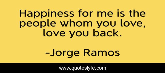 This page presents the quote "Happiness for me is the people whom you love, love you back.". Author of this quote is Jorge Ramos. This quote is about me, love, affection, people,.