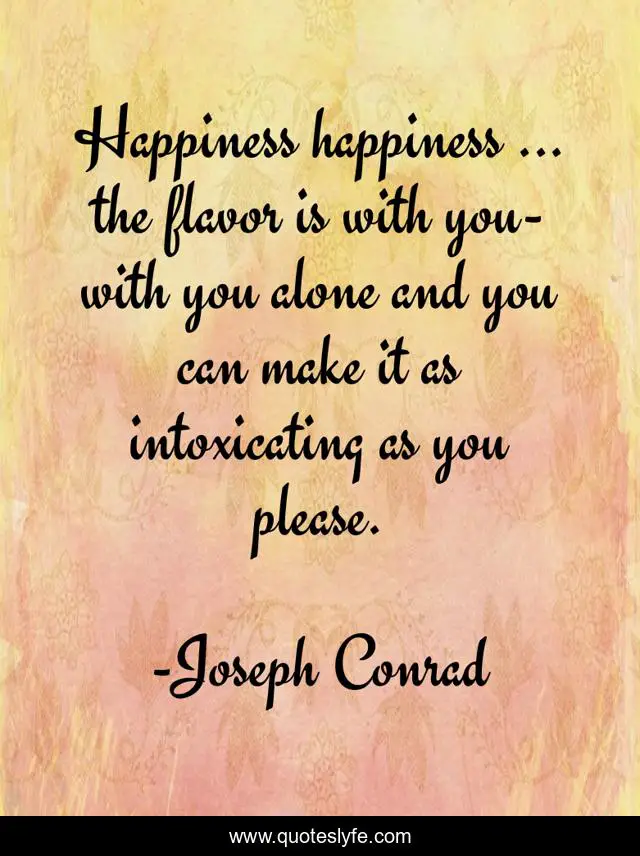 "Joseph Conrad Quotes." Quoteslyfe.com, 2025. Sat. 06 Dec. 2025. <https://www.quoteslyfe.com/quote/Happiness-happiness-the-flavor-is-with-you-267320>.