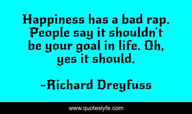 This page presents the quote "Happiness has a bad rap. People say it shouldn't be your goal in life. Oh, yes it should.". Author of this quote is Richard Dreyfuss. This quote is about life, goal, people,.