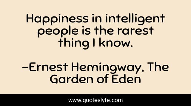 "Ernest Hemingway, The Garden of Eden Quotes." Quoteslyfe.com, 2025. Fri. 05 Dec. 2025. <https://www.quoteslyfe.com/quote/Happiness-in-intelligent-people-is-the-rarest-15968>.