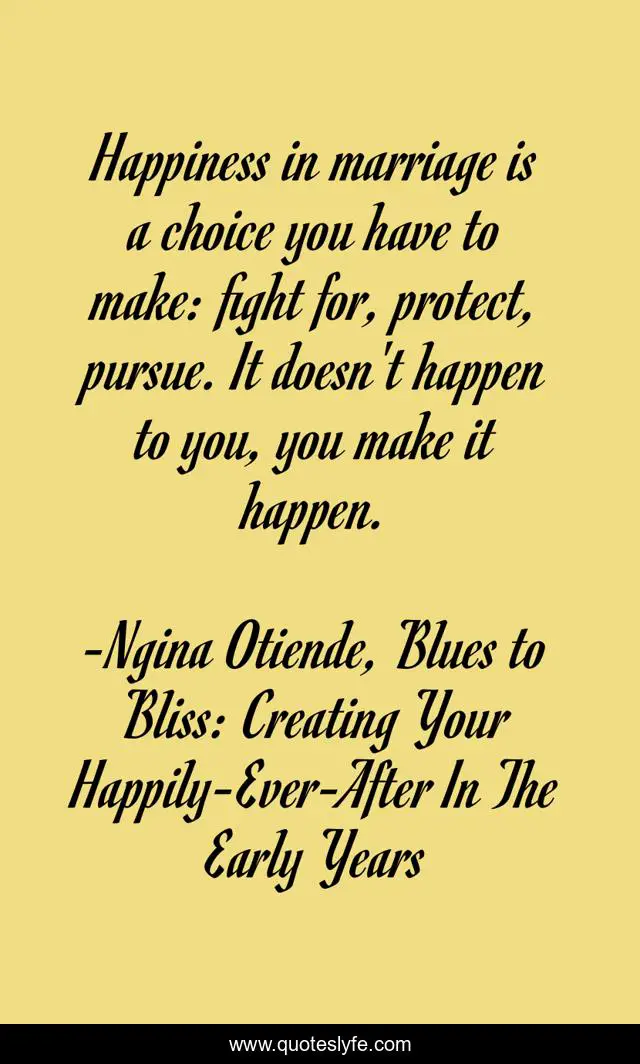 "Ngina Otiende, Blues to Bliss: Creating Your Happily-Ever-After In The Early Years Quotes." Quoteslyfe.com, 2025. Tue. 09 Dec. 2025. <https://www.quoteslyfe.com/quote/Happiness-in-marriage-is-a-choice-you-62503>.