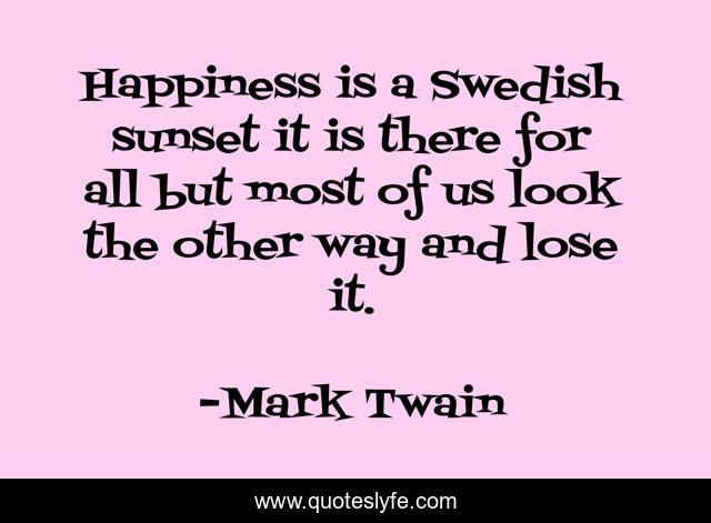 "Mark Twain Quotes." Quoteslyfe.com, 2025. Sat. 06 Dec. 2025. <https://www.quoteslyfe.com/quote/Happiness-is-a-Swedish-sunset-it-is-267689>.