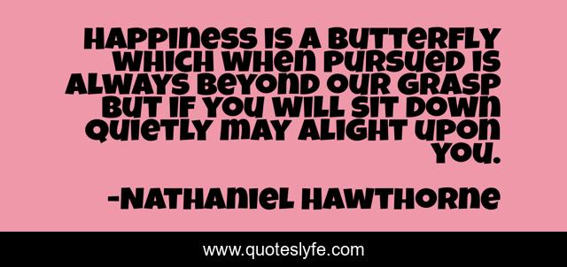 This page presents the quote "Happiness is a butterfly which when pursued is always beyond our grasp but if you will sit down quietly may alight upon you.". Author of this quote is Nathaniel Hawthorne. .