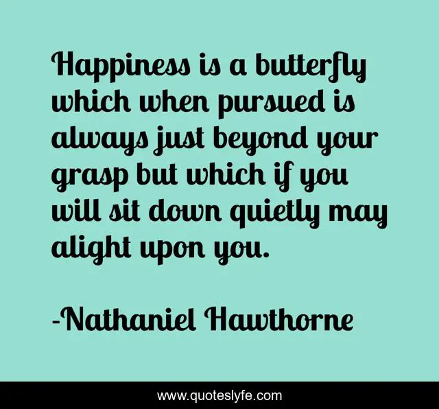 "Nathaniel Hawthorne Quotes." Quoteslyfe.com, 2025. Fri. 05 Dec. 2025. <https://www.quoteslyfe.com/quote/Happiness-is-a-butterfly-which-when-pursued-269884>.