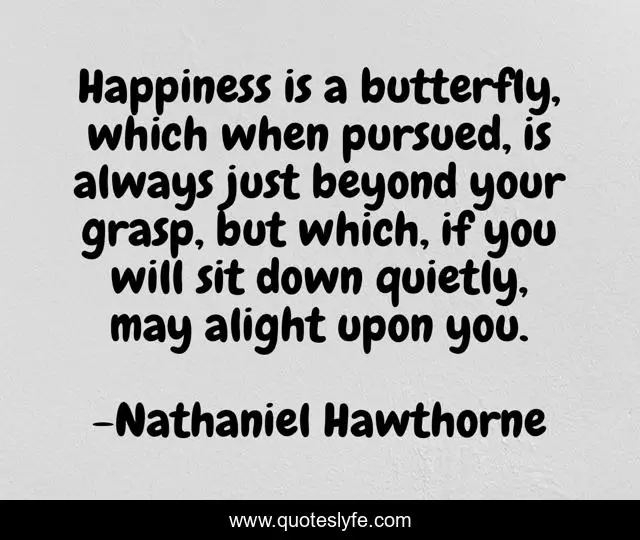 "Nathaniel Hawthorne Quotes." Quoteslyfe.com, 2025. Mon. 08 Dec. 2025. <https://www.quoteslyfe.com/quote/Happiness-is-a-butterfly-which-when-pursued-283882>.