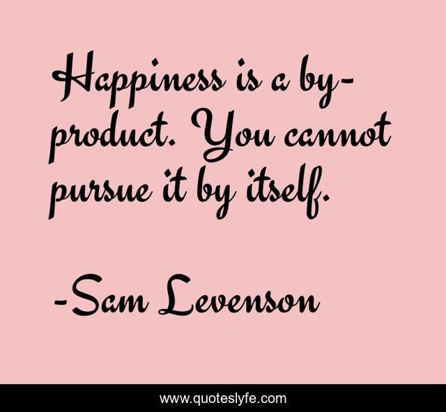 This page presents the quote "Happiness is a by-product. You cannot pursue it by itself.". Author of this quote is Sam Levenson. This quote is about pursue, cannot,.